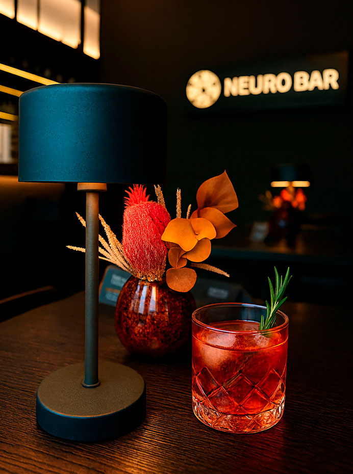 Die NEURO BAR ist mehr als eine Hotelbar. Sie ist ein Resonanzraum. Ein Ort, an dem Luft- und Raumfahrtingenieure auf Start-up-Gründerinnen treffen. Wo Forschung auf Feierabend trifft. Und aus Büro-Nachbarn und Anwohnern Gesprächspartner werden.